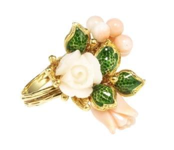 Aux feuilles en grenat vert et aux baies en corail rehaussées d'...