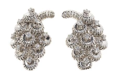 4160. Clips d'oreilles à motifs de grappes de raisin stylisées serties...