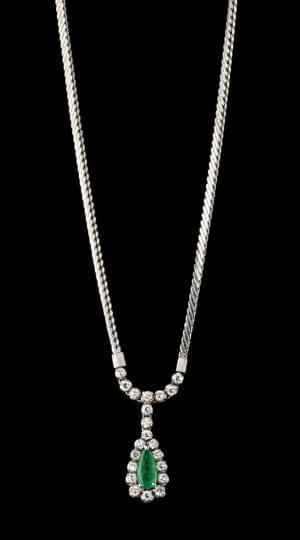 4167. Collier à maille plate retenant un motif centré d'une émeraude t...