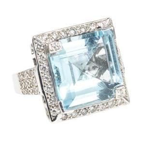 4156. Bague sertie d'une aigue-marine taille brillant (env. 8,5 ct) ép...