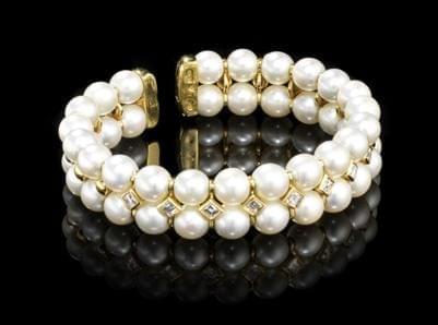 4175. Bracelet manchette rigide ouvert composé de deux lignes de perle...