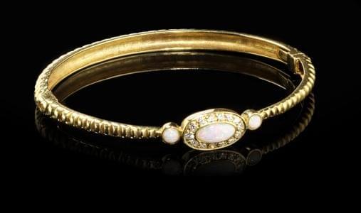 4178. Bracelet jonc ouvrant à fil godronné centré d'un motif serti d'u...