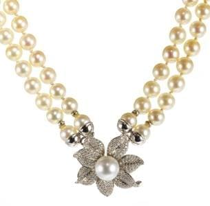 4181. Collier composé de deux rangs de perles (D env. 8 mm)