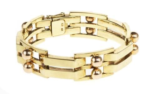 4128. Bracelet à maille gourmette ponctué de trois plaques