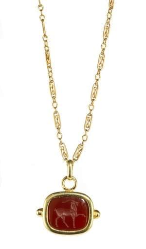 4183. Médaille sertie d'une intaille sur cornaline à motif d'antilope,...