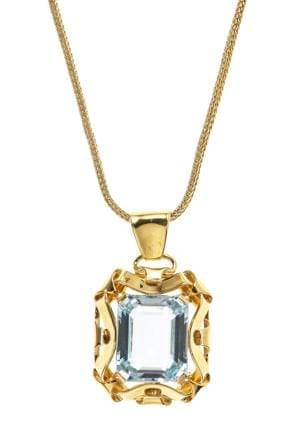 4184. Pendentif stylisé serti d'une topaze bleue taille émeraude (env....