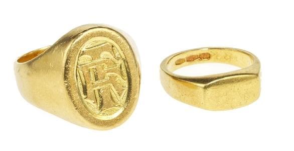 4189. Lot de deux chevalières, l'une monogrammée RF