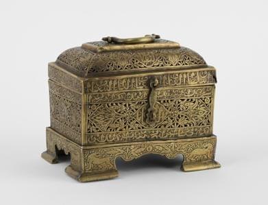Laiton ajouré et gravé à motif de calligraphies, 13x17x12 cm