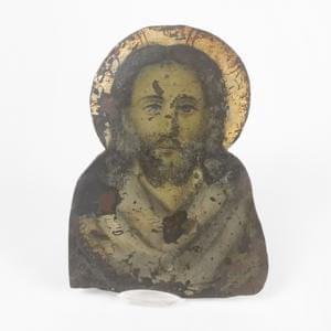 Buste du Christ aux trois quarts, huile sur toile marouflée sur...