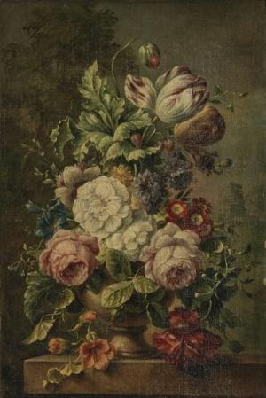 Bouquet de fleurs sur un entablement, huile sur toile, 53x36 cm