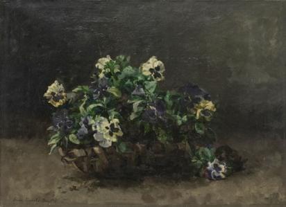 Corbeille de pensées, huile sur toile, signée, 54x73 cm