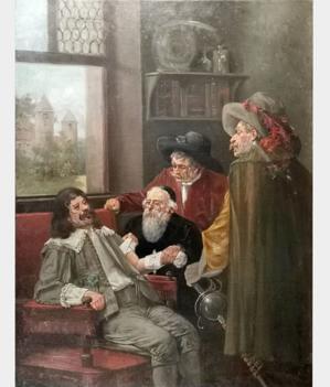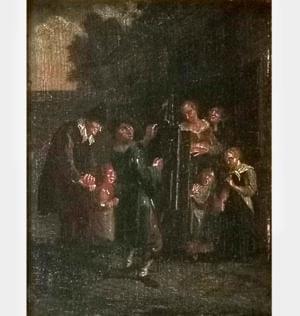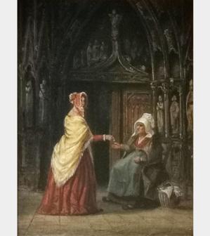 L'Aumône devant le portail de l'église, huile sur toile, 32x34 c...