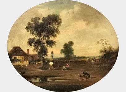 Paysage, huile sur toile, 23x31 cm. Provenance: château de Russi...