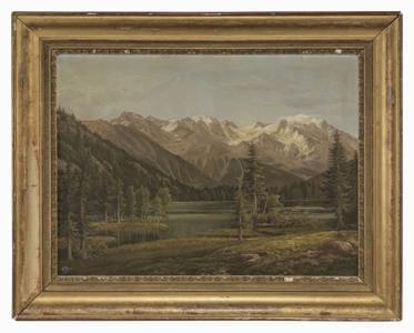 Vue du lac de Mattmark, huile sur panneau, signée et datée 1907,...