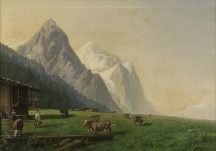 Vaches à l'alpage, huile sur toile, 115x85 cm