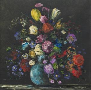 Bouquet de fleurs, huile sur toile, signée, 70x92 cm