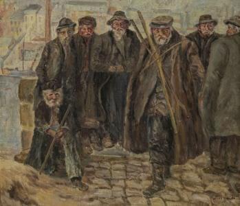 La récompense de l'aveugle, huile sur toile, signée, 120x160 cm