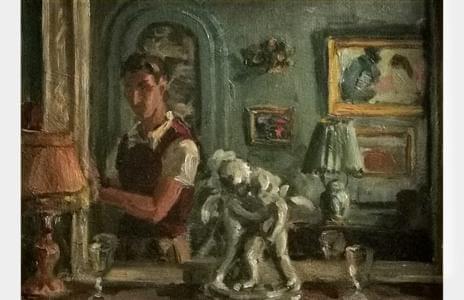 Promenade sous les arbres, huile sur toile, signée et datée 44,...