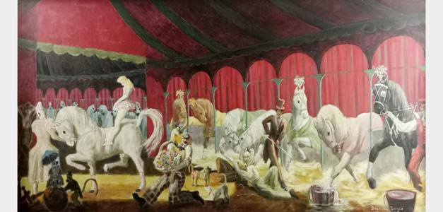 Le clown vert au trombone, copie d'une œuvre de Bernard Buffet,...
