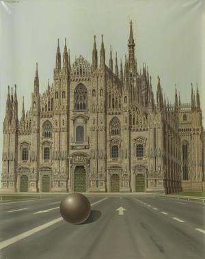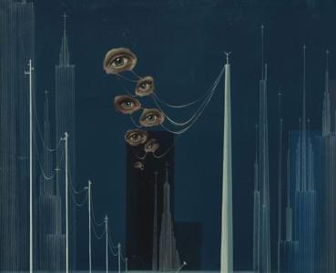 Vue du lac surréaliste, huile sur toile, signée et datée 1974, 6...