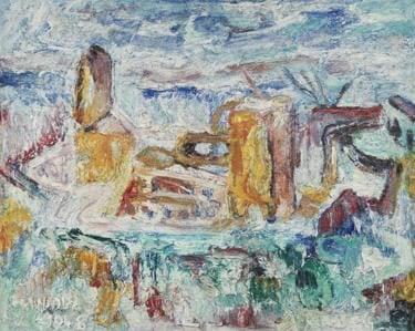 Abstraction, huile sur toile, signée et datée 51, 46x55 cm