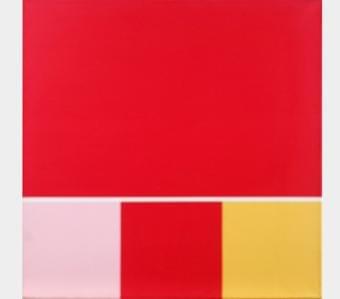 Rectangle rouge dans un rectangle noir, technique mixte, plaque...