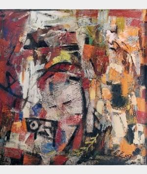 Abstraction, huile sur toile, signée et datée 1960 au dos, 42x55...