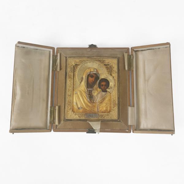 Icône, tempera sur panneau et oklade en laiton, 22x18 cm