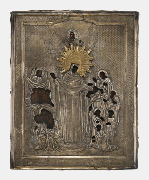 Russie, icône, XIXe s, tempera sur panneau et oklade vermeil, da...