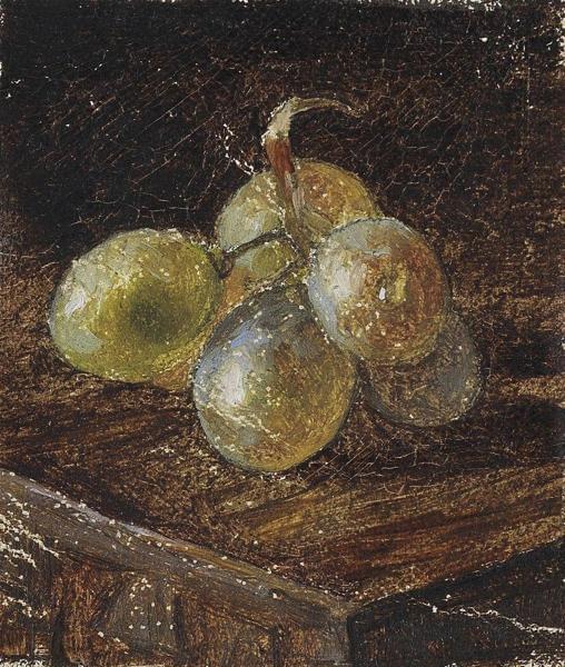 Grains de raisin, huile sur carton, 7x6 cm.Provenance: Famille d...