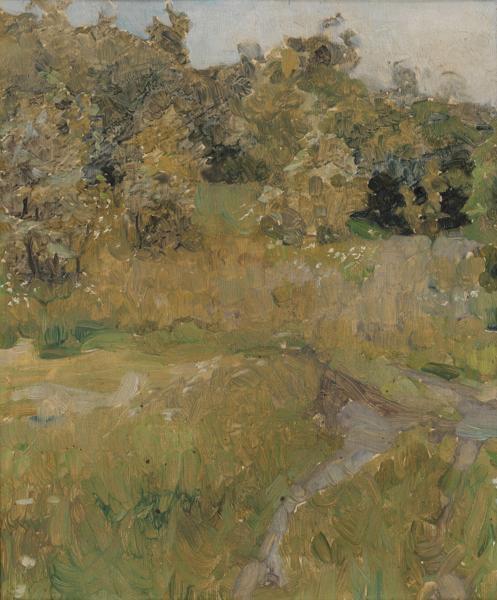 Prairie et bosquet, huile sur papier, 22x18 cm. Provenance: Fami...