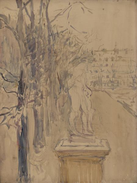 Statue d'Hercule au jardin des Tuileries, mine de plomb et aquar...