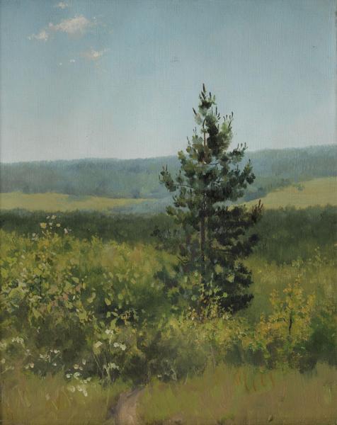 Pin dans la prairie, huile sur toile marouglée sur carton, 21,5x...