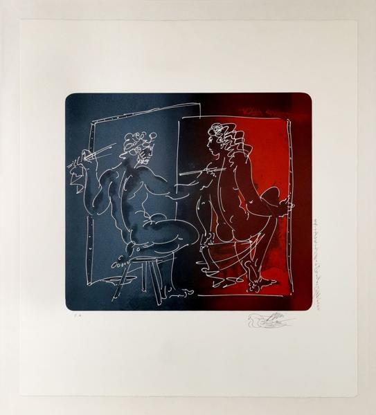 Peintre et son modèle, épreuve d'artiste, lithographie, 30x33 cm