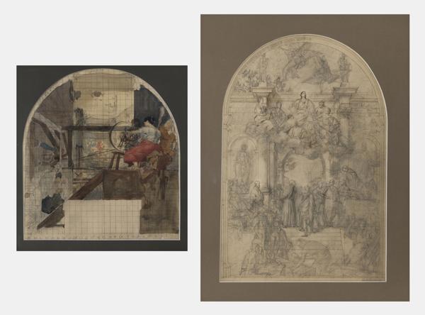Deux études: Allégorie pour une décoration murale, aquarelle sur...