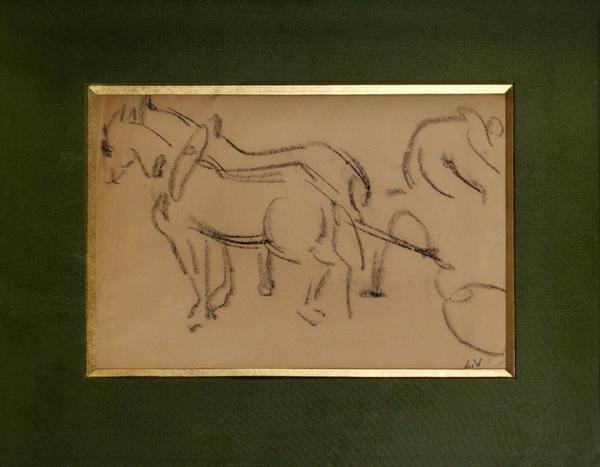 Charriot, craie sur papier, monogrammée, 17x25 cm