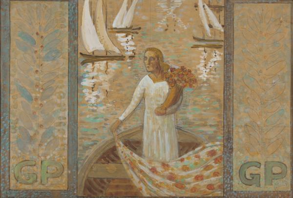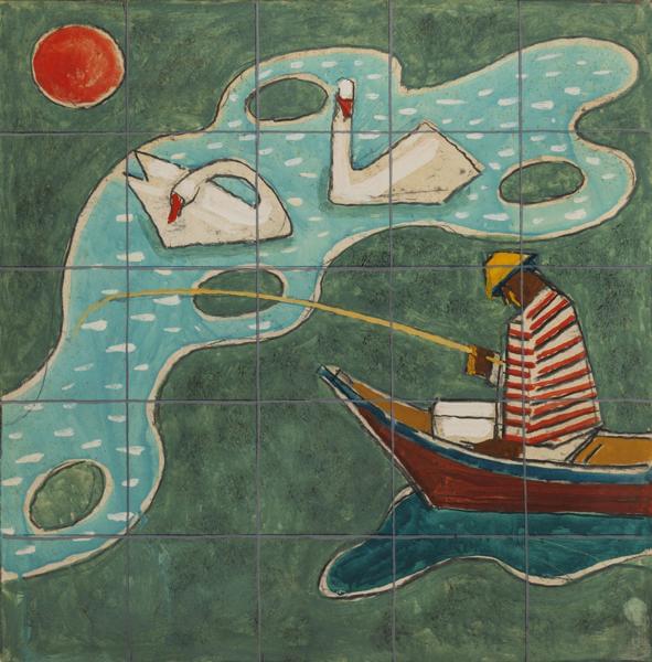 Pêcheur et cygne, étude pour un décor, gouache sur papier, 61x61...