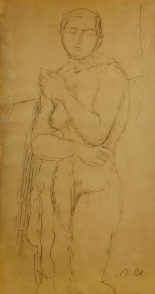 Femme nue debout, mine de plomb sur papier, signée Wenger, 26x12...