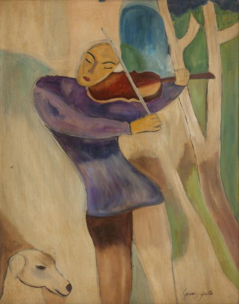 Violoniste, gouache sur papier, signée, 49x38 cm
