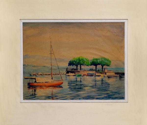 La rade, aqurelle sur papier, signée et datée 1928, 12x17 cm