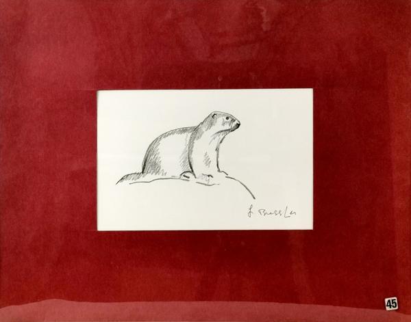 Marmotte, mine de plomb sur papier, signée, 16x24 cm