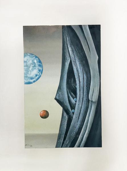 Paysage surréaliste, gouache sur papier, signée et datée 62, 26x...