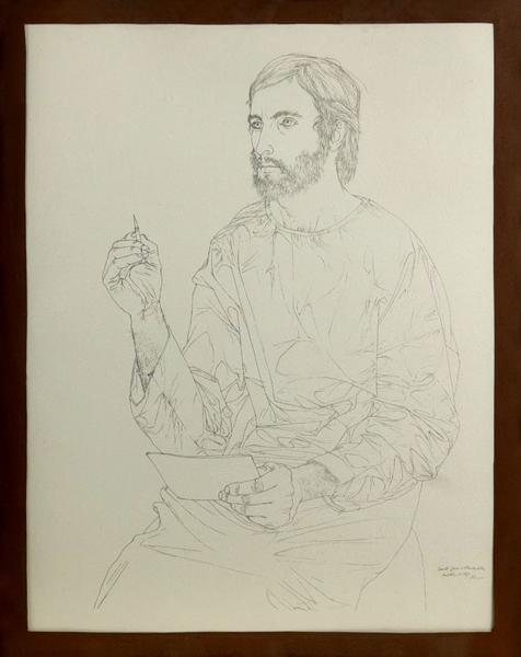 Saint Jean à l'écoute de Dieu, dessin, signé et daté 72, 27x21 c...