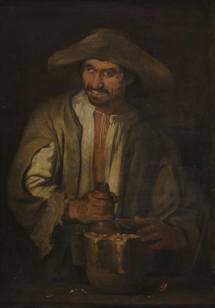 Homme au pilon, huile sur toile, 89x64 cm