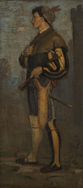 Portrait d'homme en costume, huile sur panneau, 38x18 cm