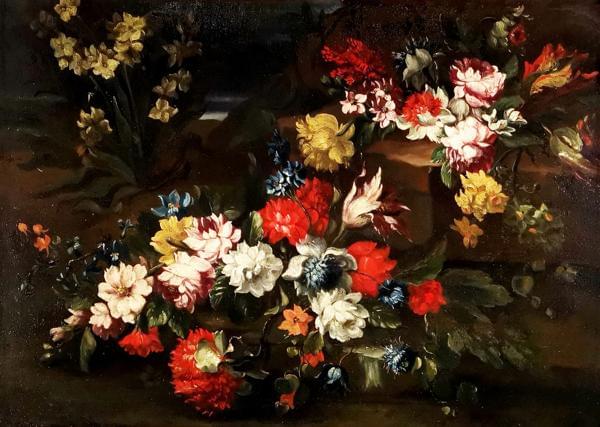 Nature morte aux fleurs sur un entablement, huile sur toile, 58,...