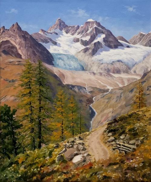 Glacier en Valais, huile sur toile signée, 55x40 cm