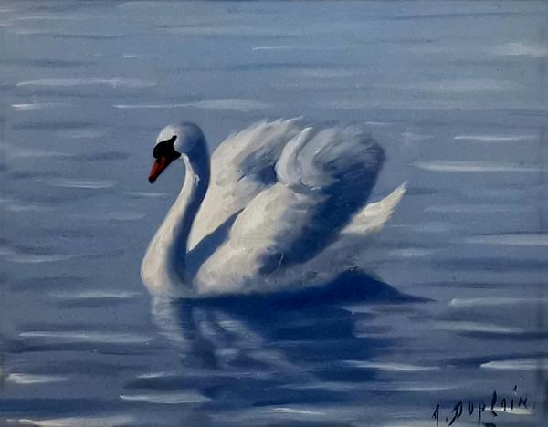 Cygne, huile sur pavatex, signée, 20x25 cm