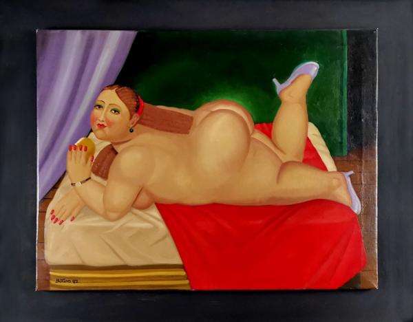 Dans le jardin, huile sur toile, signée, 65x54 cm