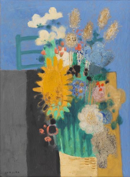 Nature morte aux fleurs, huile sur pavatex, 40x33 cm